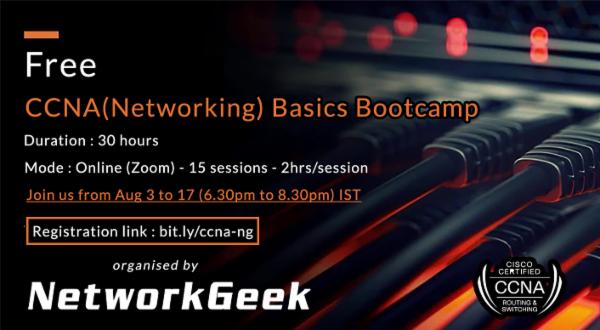 This CCNA Free Bootcamp is designed to provide a comprehensive introduction to Cisco Certified Network Associate (CCNA) concepts and prepare participants to become certified in this field. The live classes run for a total of 30 hours and offer a hands-on learning experience to enhance networking skills. Through interactive sessions, participants will acquire the theoretical knowledge and practical skills necessary to configure, troubleshoot, and manage networks using Cisco devices. Join this bootcamp to jumpstart your networking career and gain a solid foundation in CCNA principles.